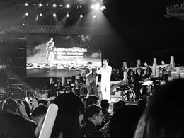 成龍國(guó)際動(dòng)作電影周開(kāi)幕式現(xiàn)場(chǎng),成龍、周華健與觀眾互動(dòng)。
