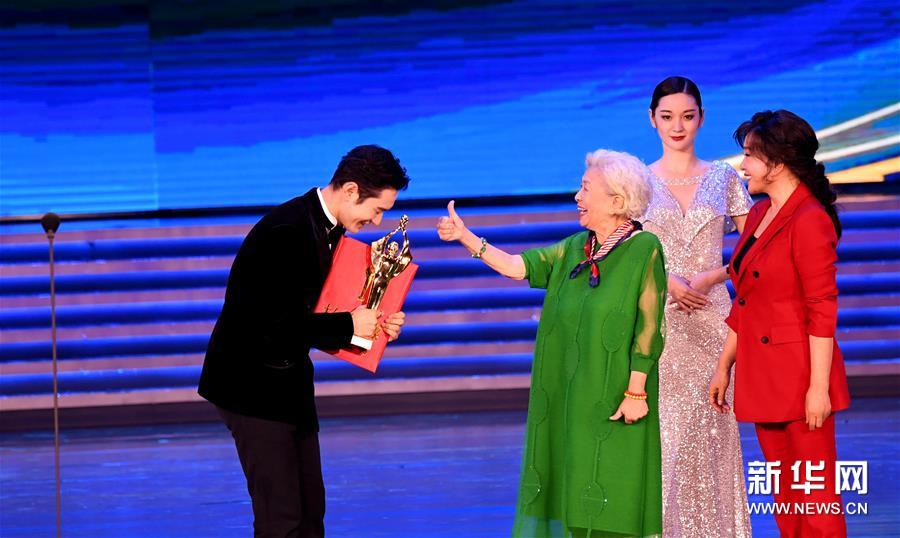 9月26日,黃曉明憑借影片《烈火英雄》獲得最佳男主角獎(jiǎng),這是頒獎(jiǎng)儀式現(xiàn)場(chǎng)。新華社記者 朱祥 攝