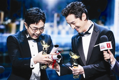本屆電影節(jié),《不虛此行》和《第八嫌疑人》的男主角胡歌和大鵬同時(shí)獲得最佳男演員獎(jiǎng)項(xiàng)。上影節(jié)兩名及以上演員獲得“最佳”并不罕見(jiàn),2015年,鄧超、段奕宏和郭濤三人憑借一部《烈日灼心》一起獲得最佳男演員稱號(hào),成為上影節(jié)史上唯一的“三黃蛋”。