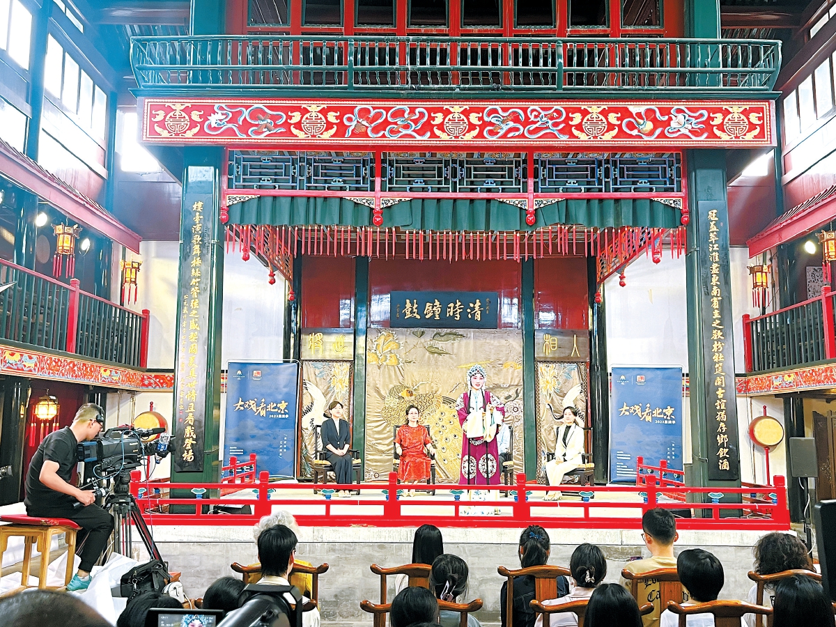 “大戲看北京”二○二三展演季“戲劇沙龍”活動(dòng)中,戲曲院團(tuán)負(fù)責(zé)人、戲曲名角和青年學(xué)生共聚一堂進(jìn)行互動(dòng)交流。