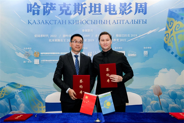 (左:壹家人文化集團(tuán)總裁林進(jìn)右:哈薩克斯坦國家電影集團(tuán)總裁阿扎瑪特·薩特巴勒德)