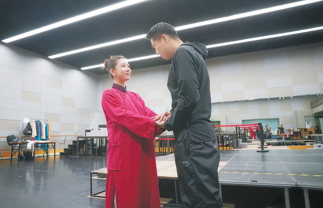 層疊的階梯、平臺把排練廳分割出高低錯落的空間,演員們穿行其間,走位自然帶上了一種落差感——這如同對主角鄧世昌心境的暗喻。“如果說《林則徐》講述的是幾位能左右國家命運的大人物的斗爭,那么《鄧世昌》就像一個人的戰(zhàn)爭?!眻?zhí)導(dǎo)兩部作品的導(dǎo)演王筱頔說。