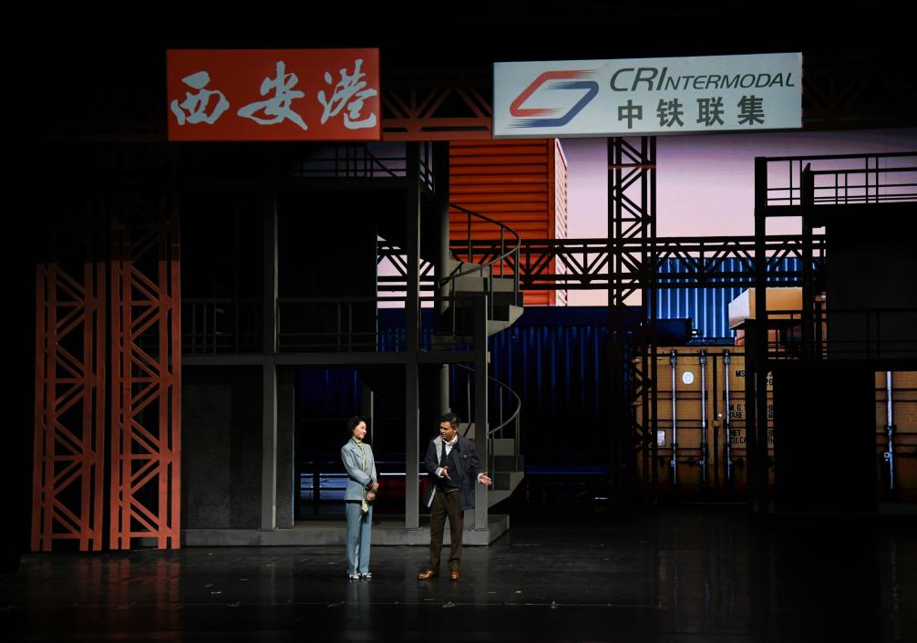 當日,由西安話劇院原創(chuàng)排演的話劇《長安號的笛聲》在西安首演。該劇講述了西安全力推動中歐班列集結中心建設,將一座四等小站建設成為“國際陸港”的奮進故事。