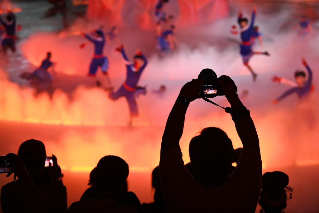 9月20日,游客在貴州省雷山縣大塘鎮(zhèn)觀看苗族歌舞詩劇《仰歐?!?。新華社發(fā)(陳孝新攝)