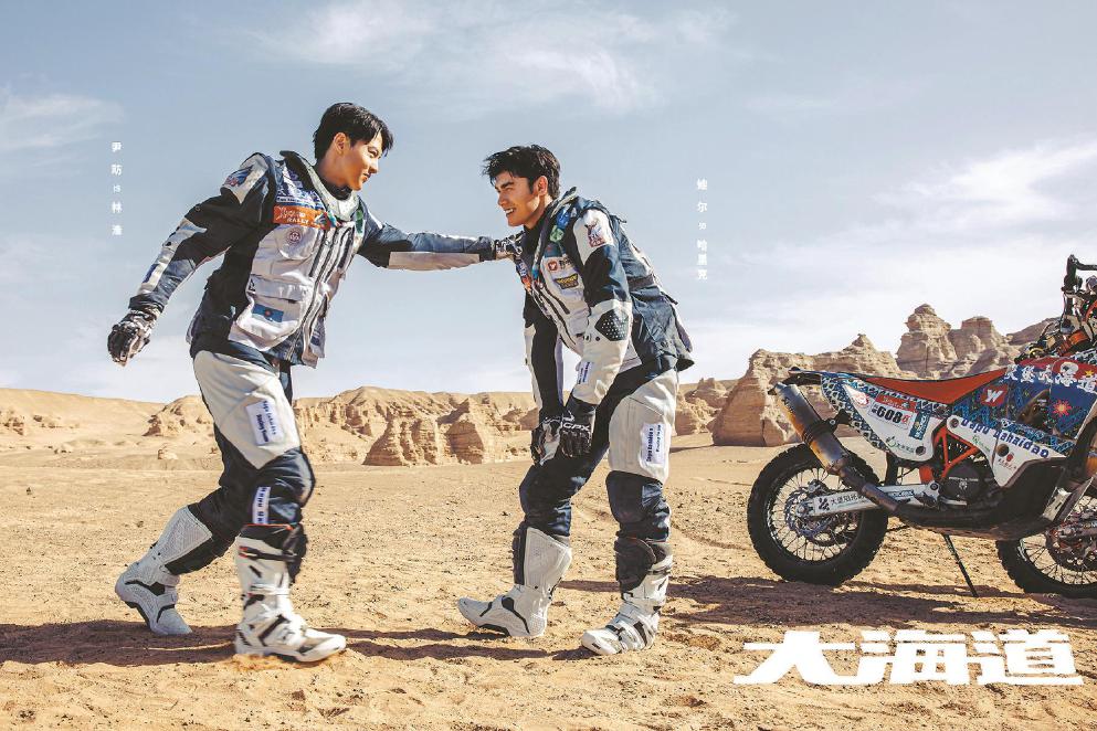 依據(jù)唐代典籍《西州圖經(jīng)》之記載:“大海道……常流沙,人行迷誤,有泉井,咸苦,無(wú)草”,古人在廣闊的大海道經(jīng)歷了艱難環(huán)境的試煉,憑借蓬勃的生命力量開辟中國(guó)陸上絲綢之路;劇中,哈里克、林浩駕駛摩托車馳騁于荒漠,進(jìn)行極限體驗(yàn)與挑戰(zhàn),延續(xù)了絲路上的生命力量,在兩千年后繼續(xù)書寫生命故事。