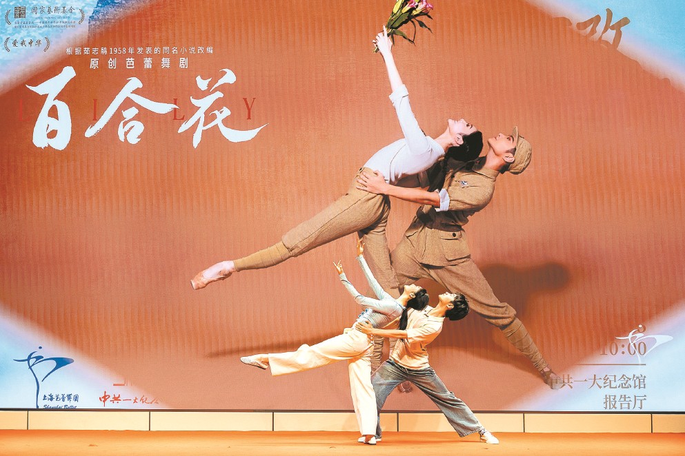 昨天,上海芭蕾舞團(tuán)與中共一大紀(jì)念館聯(lián)合舉辦“初心不改,百合花開”文藝談,讓《百合花》“綻放”紅色地標(biāo)。記者 張挺 攝