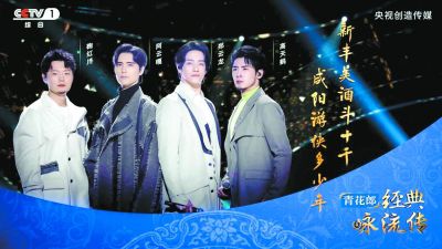 阿云嘎、鄭云龍、鞠紅川、高天鶴首度同框現(xiàn)身《經(jīng)典詠流傳》,以“阿龍川鶴”四重唱的形式歌詠古今少年的滿(mǎn)腔壯志豪情。四人演繹的《少年行》極具情感張力,一句“縱死猶聞俠骨香”唱得蕩氣回腸,讓人感受到少年游俠鮮衣怒馬的英雄氣概。隨著旋律,詩(shī)佛王維這首筆墨酣暢的豪放詩(shī)篇也得以重新煥發(fā)出蓬勃的生命力。