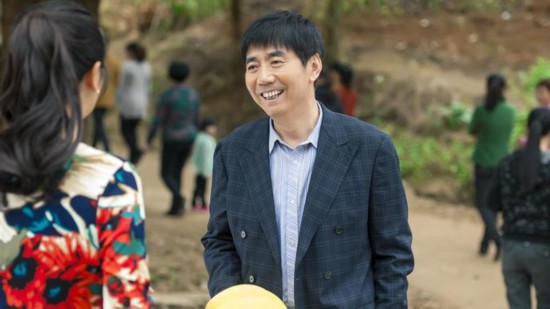 在扶貧劇《我的金山銀山》中,演員范明第一個(gè)出場(chǎng)。大樹下,由他飾演的村主任范星火身披西裝外套,打著斜紋領(lǐng)帶,戴一黑色墨鏡,腳蹬旅游鞋,面向村民侃侃而談。