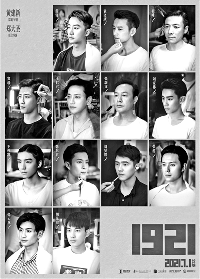 10月19日,由黃建新監(jiān)制兼導(dǎo)演,鄭大圣聯(lián)合導(dǎo)演的電影《1921》宣布將于2021年7月1日全國公映,并首次曝光了主演陣容——由黃軒、袁文康、祖峰、竇驍、王仁君、張頌文、劉家祎、王俊凱、韓東君、劉昊然等飾演中共一大代表。據(jù)悉,1921年,一大參會(huì)代表的平均年齡只有28歲,正是一群青春朝氣的熱血青年。為了更貼近真實(shí)人物,演員除了要年齡符合,更要“形神兼?zhèn)洹?。黃建新導(dǎo)演透露,為了選出樣貌和靜態(tài)上最像角色的演員,籌備時(shí)在辦公室兩面墻上貼滿了照片。