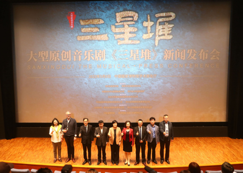 由四川省委宣傳部、紫荊文化集團(tuán)有限公司指導(dǎo),中國(guó)對(duì)外文化集團(tuán)有限公司、四川省文化和旅游廳出品,北京天橋盛世投資集團(tuán)有限責(zé)任公司聯(lián)合出品,中演演出院線發(fā)展有限責(zé)任公司、四川省歌舞劇院有限責(zé)任公司聯(lián)合主辦,北京四海一家文化傳播有限責(zé)任公司、四川省歌舞劇院有限責(zé)任公司聯(lián)合制作、三星堆博物館支持的大型原創(chuàng)音樂(lè)劇《三星堆》新聞發(fā)布會(huì)8日在中國(guó)國(guó)家博物館舉行。