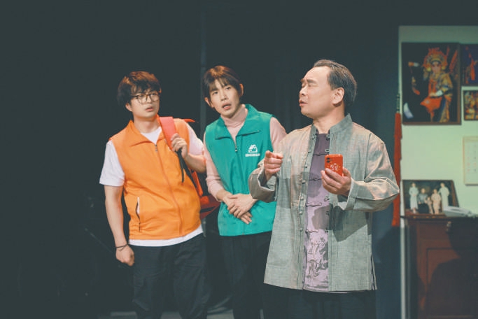 劇中,松巖團(tuán)長邊講解邊示范被形容為“用腳給了手一個嘴巴”的京劇武術(shù)動作“飛腳”,還有戲曲表演中的“四功五法”;劉旸一會兒穿著“立人家政”的馬甲當(dāng)“保姆”,一會兒又穿著時尚潮服表演“脫口秀”;宇文秋實(shí)戴上假發(fā)是滿口方言的“四川小保姆”,換成帽子又成了白發(fā)蒼蒼的“北京老大爺”。而松巖之子松天碩,在劇中也惟妙惟肖扮演了好幾個各有亮點(diǎn)的生動角色。