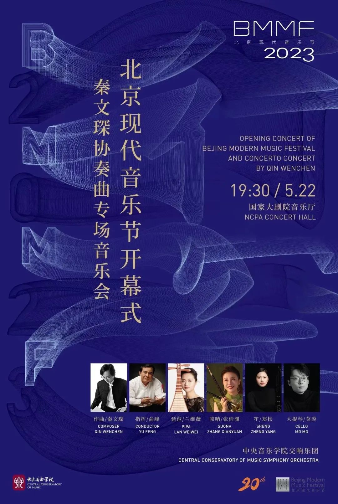 二十及冠,浴火向日!北京現(xiàn)代音樂(lè)節(jié)20華誕開(kāi)幕音樂(lè)會(huì)將集中奏響當(dāng)今中國(guó)音樂(lè)創(chuàng)作翹楚秦文琛的4部協(xié)奏力作,屆時(shí)著名指揮家俞峰,將攜琵琶演奏家蘭維薇、大提琴演奏家莫漠、嗩吶演奏家張倩淵、笙演奏家鄭楊以及中央音樂(lè)學(xué)院交響樂(lè)團(tuán)于5月22日亮相國(guó)家大劇院音樂(lè)廳。