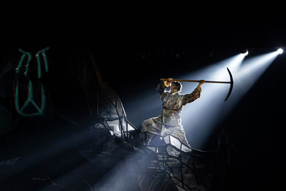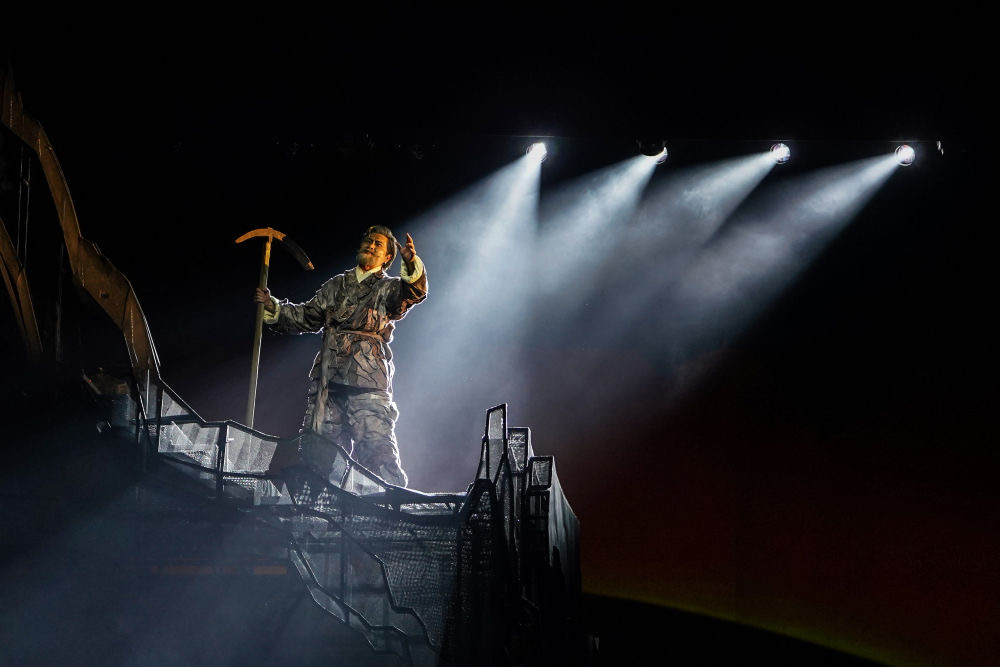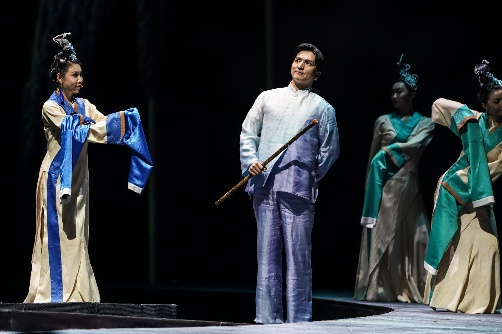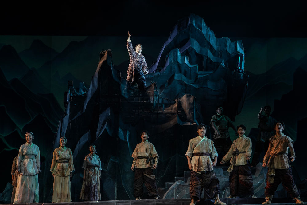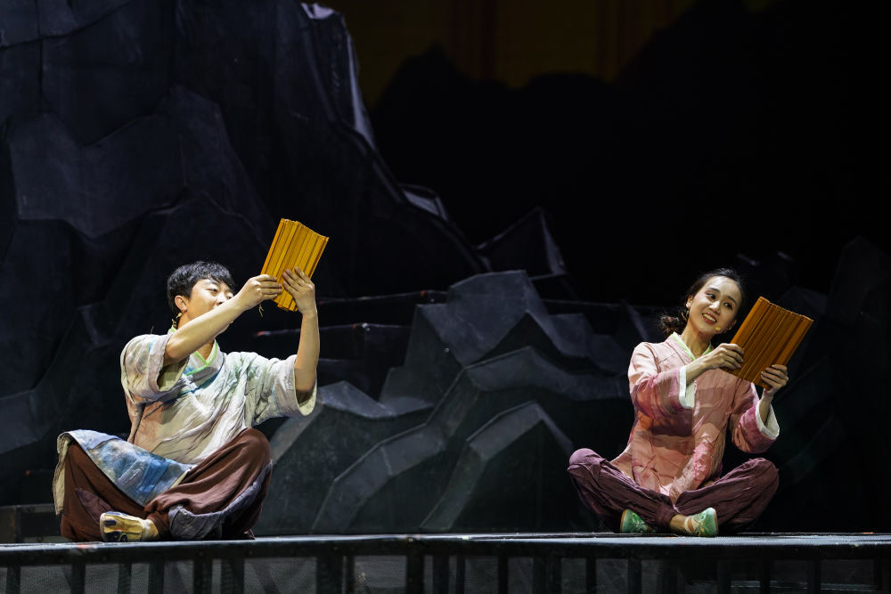 5月27日,大型說唱音樂劇《愚公移山》在位于北京的中央歌劇院首演。音樂劇《愚公移山》是2022年度河南省重點文藝創(chuàng)作項目,由濟源產(chǎn)城融合示范區(qū)黨工委宣傳部、文化廣電和旅游局出品,北京大學(xué)民族音樂與音樂劇研究中心創(chuàng)制。全劇采用說唱的藝術(shù)形式,以傳承和弘揚愚公移山精神為線索,講述了當(dāng)代大學(xué)生將傳統(tǒng)文化納入現(xiàn)代視野,不斷打造新生活、開拓新境界的新時代奮進故事。新華社記者 彭子洋 攝影報道