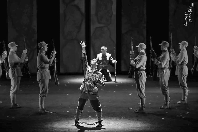 在此輪話劇演出中,曾黎、黃品沅、王勁松、于東江等主要演員的扎實(shí)演技可圈可點(diǎn),塑造出立體可信的人物形象。瞿恩在行刑前的慷慨陳詞鏗鏘有力,催人淚下:“我是為了我的理想而犧牲的,無論這個理想能不能實(shí)現(xiàn),因?yàn)槿祟惿鐣荒軟]有理想地前進(jìn)。”楊立青從最初懵懂沖動、內(nèi)心正直的青年,到受到瞿恩精神與信念的影響,再到親眼目睹與他心愛的女孩瞿霞相似的革命者被槍決時,痛苦地自白“心像被刀子扎了一樣”,最終逐漸成為一名成熟堅(jiān)定的將領(lǐng),在劇中有著完整自然的成長軌跡。