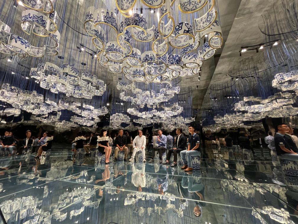 與會(huì)專(zhuān)家代表齊聚空間場(chǎng)景藝術(shù)《花的三重境》中,以絨瓷為天,以鏡面為席,暢談藝術(shù)、文化與奧林匹克的融合發(fā)展。