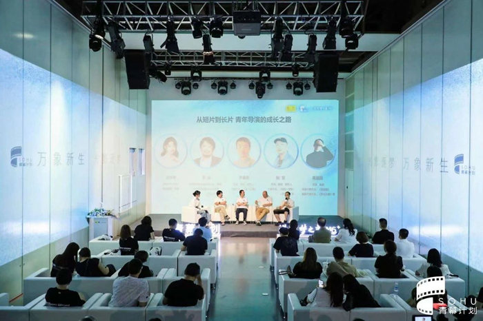 現(xiàn)場,導演李睿珺、耿軍、北京電影學院攝影系主任李偉、青年創(chuàng)作者代表高臨陽展開以“從短片到長片,青年導演的成長之路”為主題的對談,四位嘉賓分享了各自影像創(chuàng)作的經(jīng)驗,談到短片對于青年影人培養(yǎng)視覺先鋒思維、創(chuàng)作實踐有著極為重要的作用。