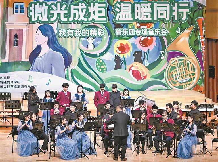 2023年12月27日,市特教學(xué)校管樂團專場音樂會在專業(yè)音樂廳——五緣音樂廳舉行,18名學(xué)生上場,帶來了十多首國內(nèi)外經(jīng)典曲目。