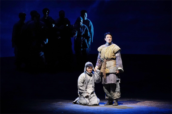 牟森導(dǎo)演將這部作品視為“超級(jí)中國(guó)社會(huì)史詩(shī)”,以一種契合原著精神的質(zhì)樸風(fēng)貌和宏大視野作為內(nèi)在張力,牢牢抓住劉震云那種貌似平實(shí)簡(jiǎn)潔卻“扎心金句”頻出的語(yǔ)言風(fēng)格,讓一個(gè)個(gè)人物在舞臺(tái)上豐盈充沛,直抵人心。他為這部人物繁多、線索復(fù)雜的大戲選擇了以歌唱性為主的敘事體,劇中有旁白,有歌隊(duì),有獨(dú)白,整個(gè)演出帶有一種結(jié)構(gòu)上的音樂(lè)性。他說(shuō):“滿臺(tái)演員特別像一個(gè)交響樂(lè)團(tuán),有各種樂(lè)器,比如說(shuō)老年曹青娥就像是大提琴一樣,牧師老詹可能是銅管,不同的音色構(gòu)成了心事的洪流?!北娚鷩W都被包裹在一種“難以言說(shuō)”的整體哲學(xué)關(guān)照當(dāng)中;每一個(gè)人的苦難與求索,也因?yàn)榈玫剿说睦斫夂透袆?dòng),而具有了“抵達(dá)”和“獲救”的意味。
