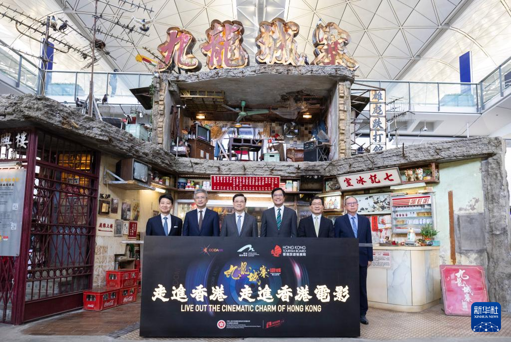 新華社香港10月7日電 香港國際機(jī)場接機(jī)大廳,一座約6.5米高的雙層舊建筑物屋頂亮著“九龍城寨”霓虹燈牌,吸引許多旅客駐足欣賞。7日,以“走進(jìn)香港 走進(jìn)香港電影”為主題的展覽在香港國際機(jī)場舉行開幕儀式,電影《九龍城寨之圍城》多個拍攝場景一一重現(xiàn)。