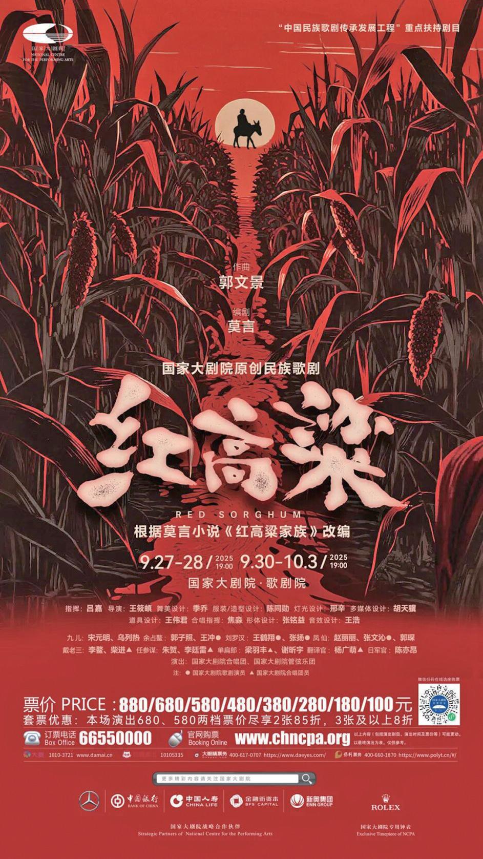 為大力弘揚(yáng)英雄主義、愛國主義,在2025年紀(jì)念中國人民抗日戰(zhàn)爭暨世界反法西斯戰(zhàn)爭勝利80周年之際,國家大劇院隆重推出原創(chuàng)民族歌劇《紅高粱》,即將于9月27日至10月3日迎來世界首演。作為國家大劇院創(chuàng)作推出的第23部原創(chuàng)歌劇,該劇以文學(xué)經(jīng)典的全新舞臺(tái)呈現(xiàn),歌頌永恒熾熱的民族精神。