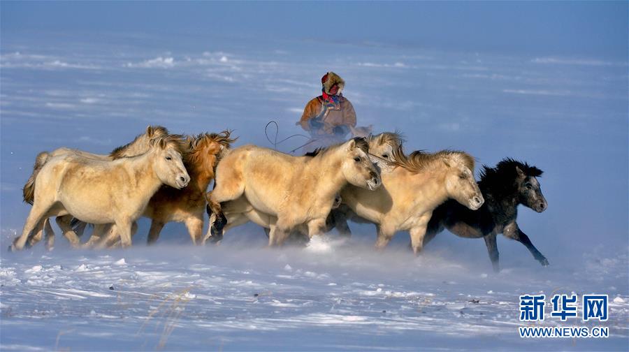1月5日,蒙古族牧民在套馬。當日,2016年烏珠穆沁馬文化節(jié)在內蒙古錫林郭勒盟西烏珠穆沁旗吉仁高勒鎮(zhèn)舉行。當?shù)孛晒抛迥撩裆碇A麗的民族服飾,帶著馬匹從四面八方趕到會場,參加賽馬、套馬、乘馬拾物、蒙古馬選美等多項具有民族特色的活動,吸引大批游客前來觀看。新華社記者 任軍川 攝
