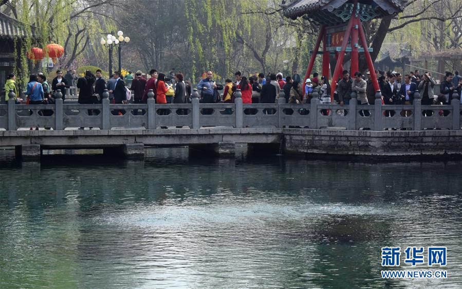 3月22日,濟(jì)南趵突泉水位跌破紅色警戒線,噴涌乏力。當(dāng)日,濟(jì)南趵突泉實時水位降至27.59米,跌破27.60米的紅色警戒線,面臨停噴危險。趵突泉水位走低的主要原因是春季干旱及春灌的影響。新華社記者 徐速繪 攝
