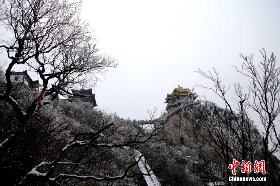 3月23日,河南洛陽(yáng)老君山遭遇“倒春寒”,海拔2000米的老君山三月飛起“桃花雪”,玉樹(shù)瓊枝、銀裝素裹,金頂廟宇和蒼松翠柏相襯,猶如一幅精致的水墨畫。 中新社記者 王中舉 攝