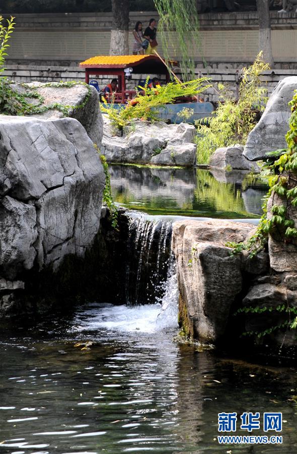 受近期雨水充沛的影響,以趵突泉為代表的濟(jì)南市區(qū)名泉紛紛復(fù)蘇,基本恢復(fù)了正常噴涌的景觀。 新華社記者 徐速繪 攝