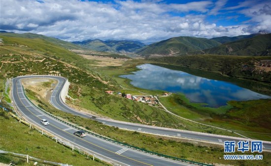 國(guó)道317線經(jīng)過(guò)四川省甘孜藏族自治州境內(nèi)的卡薩湖(2014年9月15日攝)。紅二方面軍曾在長(zhǎng)征途中從甘孜到阿壩進(jìn)行草地行軍,草地“在地上看不見(jiàn)泥土,只看見(jiàn)草和水,不但沒(méi)有人煙,簡(jiǎn)直沒(méi)有人跡,所以也沒(méi)有路,沒(méi)有樹(shù)木”。 “紅軍不怕遠(yuǎn)征難,萬(wàn)水千山只等閑?!遍L(zhǎng)征譜寫(xiě)了一曲人類(lèi)征服自然的凱歌,峽谷激流、雪山草地、物資匱乏、生命禁區(qū),這一切都不能阻擋紅軍前進(jìn)的步伐。80年過(guò)去,滄海桑田,紅軍長(zhǎng)征走過(guò)的荒郊野嶺,如今樓宇林立,欣欣向榮;徒步翻越的大山、攻克的關(guān)隘、沼澤遍布的草地、泅渡的河流,修起了通暢快捷的公路和大橋……長(zhǎng)征之路發(fā)生了翻天覆地的變化,昔日的艱難險(xiǎn)阻正漸漸變成康莊通途。新華社記者劉續(xù)攝