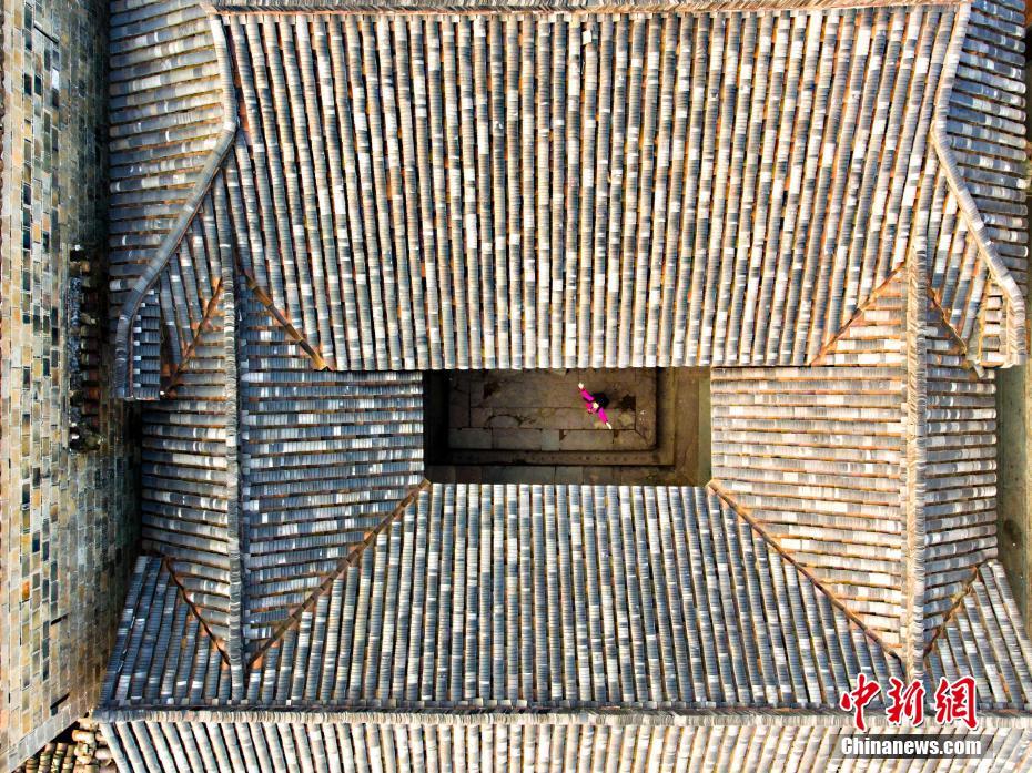 12月10日,航拍位于江西金溪縣有著600多年歷史的中國歷史文化名村、中國傳統(tǒng)村落竹橋古村,俯瞰全村,形似一柄巨扇。該村現(xiàn)保存有明代所建民居8幢,明代祠堂1幢,其余為清代建筑,青磚灰瓦,樸實(shí)素雅,為贛派建筑最典型的代表。村前溪水長流,良田萬頃,村后茂林修竹,鳥鳴樹幽,身歷其境,如入畫中。傅建斌 攝