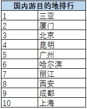 國內(nèi)游熱門目的地榜單