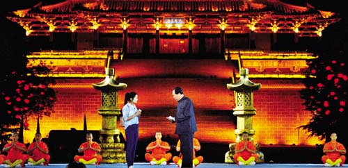 作為客場競演城市,我市節(jié)目精心策劃,抓住了城市的靈魂,以“心靈之舟”為主題思想,多角度展示了我市的文化旅游特色。在第一階段展示中,高清影視資料向觀眾推介了五臺山、雁門關(guān)等大美山河,吊足了觀眾的味口。4名原生態(tài)歌手和20名小朋友齊唱《美麗忻州心靈之舟》,營造出寧靜的開場氛圍。緊接著,毛澤東特型演員張瑞奇的出現(xiàn),將全場帶入第一個高潮,毛澤東與五臺山的歷史淵源點(diǎn)燃紅色激情,我市既展示出了名山秀水的妖嬈,又漂亮地打出了紅色旅游這張牌。宣講“忻州,我們的心靈之舟”這一主題的同時,更是將凈化心靈、激蕩心靈、洗滌心靈、愉悅心靈、陶冶心靈這5大內(nèi)容融入到節(jié)目中,完整地傳達(dá)“我們的忻州,是蕩滌人們心靈的忻州,是放飛人們夢想的忻州”這一主題思想。第一階段競演結(jié)束,鳳凰網(wǎng)點(diǎn)評嘉賓將支持票投給了忻州,因?yàn)樾弥菔莻€令她動心的地方。就連著名表演藝術(shù)家馬德華先生也被忻州的名山秀水所感染,他激情點(diǎn)評:“忻州令人魂牽夢繞。”圖為市委常委、常務(wù)副市長趙志堅傾情講述,撼動全場第二階段的展演,圍繞“產(chǎn)業(yè)轉(zhuǎn)型升級和旅游脫貧致富”,我市以建設(shè)蘆芽山為故事背景,蘆芽山掌門常洪睿講述了他致力打造智慧化旅游景區(qū)的故事。