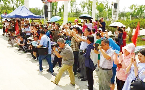 活動以“秀美云中河”為主題,以云中河景區(qū)景觀為背景,多方位多視角展示園林獨特的自然景觀和文化內(nèi)涵,廣泛征集攝影專業(yè)人士和攝影愛好者捕捉到的云中河景區(qū)生態(tài)綠化、四季景觀、園事花事活動、景區(qū)文化生活、休憩娛樂場景等,體現(xiàn)和展示云中河景區(qū)的發(fā)展成就、人與自然和諧共處的攝影作品。圖為攝影愛好者現(xiàn)場拍照(記者 徐國華 攝影報道)