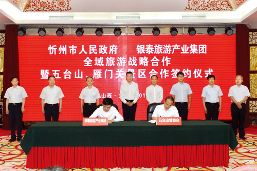 簽約儀式上,市長(zhǎng)鄭連生和銀泰旅游產(chǎn)業(yè)集團(tuán)總裁倪海濤分別代表雙方簽訂全域旅游戰(zhàn)略合作協(xié)議。五臺(tái)山管委會(huì)與銀泰旅游產(chǎn)業(yè)集團(tuán)簽訂五臺(tái)山景區(qū)戰(zhàn)略合作協(xié)議;代縣縣政府與銀泰旅游產(chǎn)業(yè)集團(tuán)簽訂雁門關(guān)景區(qū)戰(zhàn)略合作協(xié)議。
