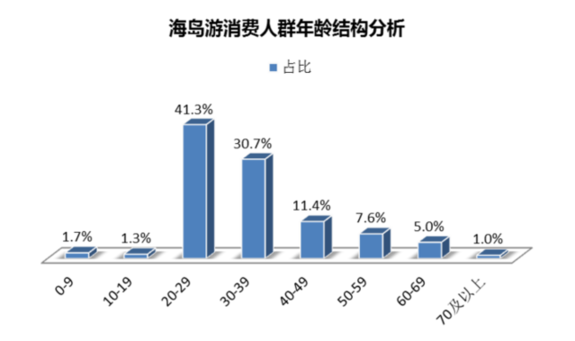 《報告》基于同程旅游最近一年的海島游消費用戶數據所做的分析顯示,20至39歲這一年齡層占比超過七成,是海島游的核心消費人群。另外,19歲以下人群占比3%,其中0-9歲占比1.7%,表明親子家庭已經成為海島游的重要客群。