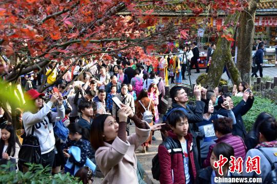 11月26日,長(zhǎng)沙岳麓山上迎來(lái)眾多游客扎堆賞楓。岳麓山是全國(guó)四大賞楓勝地之一,每年的11月下旬至12月為最佳觀賞期,登山可看到“漫山紅遍,層林盡染”的美景。