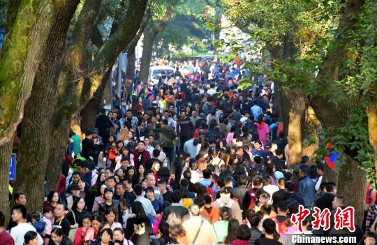 岳麓山登高路全被上山游客擠滿。 盧文偉 攝