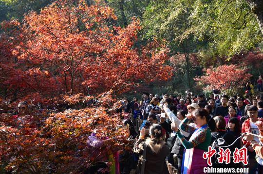 楓樹林下聚集大批游客拍照留念。 盧文偉 攝