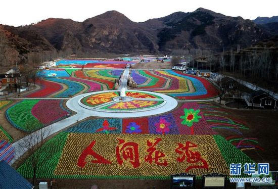 從空中俯瞰北京市密云區(qū)車道峪村用風(fēng)車打造的“人間花?!敝黝}景觀(12月5日攝)。近日,北京市密云區(qū)車道峪村村民用約120萬只風(fēng)車,打造出一片占地500畝的“風(fēng)車?!?,包含多個(gè)主題。該景觀于12月8日正式亮相。新華社記者 羅曉光 攝