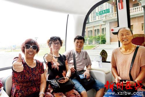 8月20日,參加體驗(yàn)乘坐的市民為無人駕駛小型巴士“點(diǎn)贊”。