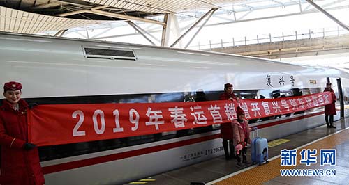 據(jù)悉,該趟旅客列車是北京南站開往嵐山西站的G4215次,列車使用CR400AF復興號重聯(lián)車體,全列定員1152人,全程864KM,單程運行5小時17分?!?月1日是2019年春運的第一天,G4215上座率超70%。”北京南站梁兆鈺說。