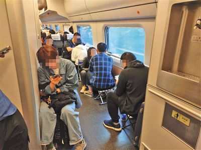 新京報記者注意到,15號車廂內(nèi)至少有補(bǔ)票乘客6人,其中2人有座,其余皆為無座乘客。但并未造成本次列車超員。
