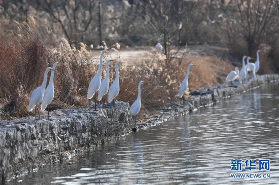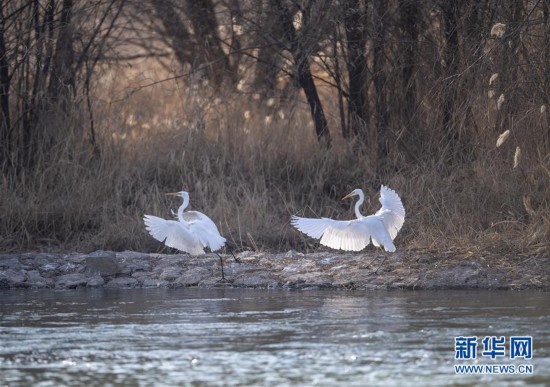 12月5日,白鷺在太原市汾河濕地公園內(nèi)嬉戲。 冬日,位于山西太原的汾河濕地公園迎來大批到此棲息越冬的白鷺。 新華社記者 楊晨光 攝