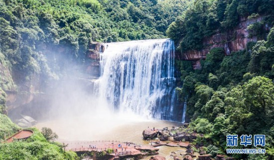 6月15日,游客在赤水大瀑布景區(qū)觀光游玩。新華社記者 陶亮 攝