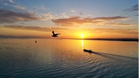 立秋過后,新疆博斯騰湖上漁民秋捕繁忙。位于新疆巴音郭楞蒙古自治州博湖縣境內的博斯騰湖是我國最大的內陸淡水湖,也是新疆最大的漁業(yè)生產基地。博斯騰湖年產草魚、鰱魚、鯉魚等32種魚類約4000噸。圖為8月8日,在新疆博斯騰湖,漁民駕駛漁船前往捕撈區(qū)域(無人機照片)。新華社發(fā) 年磊 攝
