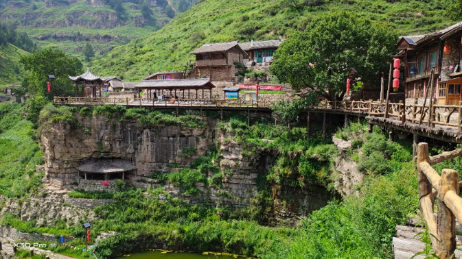 位于山西省蘆芽山晉西北管涔山深處,濃密蔥蘢的林海之中,有三個(gè)古老神奇的懸空村:王化溝村、五花山村、曹家梁村,均屬寧武縣涔山鄉(xiāng),三村相距很近分別建在懸崖絕壁間,遠(yuǎn)望好似空中樓閣,天上人家。村里房屋都建在百米高的懸崖絕壁上,街道是立木支撐、圓木鋪架的“棧道”。在這個(gè)古老的村子里,處處可見石砌的小徑、古樸的民居,村民們悠然地過著日出而作、日落而息的農(nóng)耕生活。村子古老、靜謐,卻遠(yuǎn)近聞名。