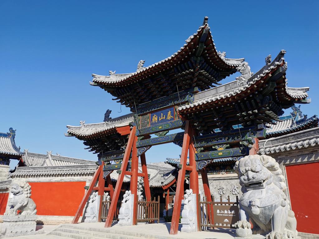 泰山廟坐落于忻州古城內(nèi),又名東岳廟。創(chuàng)建于北宋時(shí)期,現(xiàn)存為明清時(shí)代遺構(gòu)。明代嘉靖年間擴(kuò)建,清同治三年(1864年)重修。坐北向南,東西31.3米,南北73米。泰山廟建筑宏大,從北到南,有大殿、獻(xiàn)殿(過殿)、戲臺(樂樓)、山門、影壁。兩側(cè)有鐘亭、鼓亭、牌樓。戲臺與獻(xiàn)殿中原有三思橋。2007年,泰山廟被忻州市人民政府公布為市級文物保護(hù)單位。