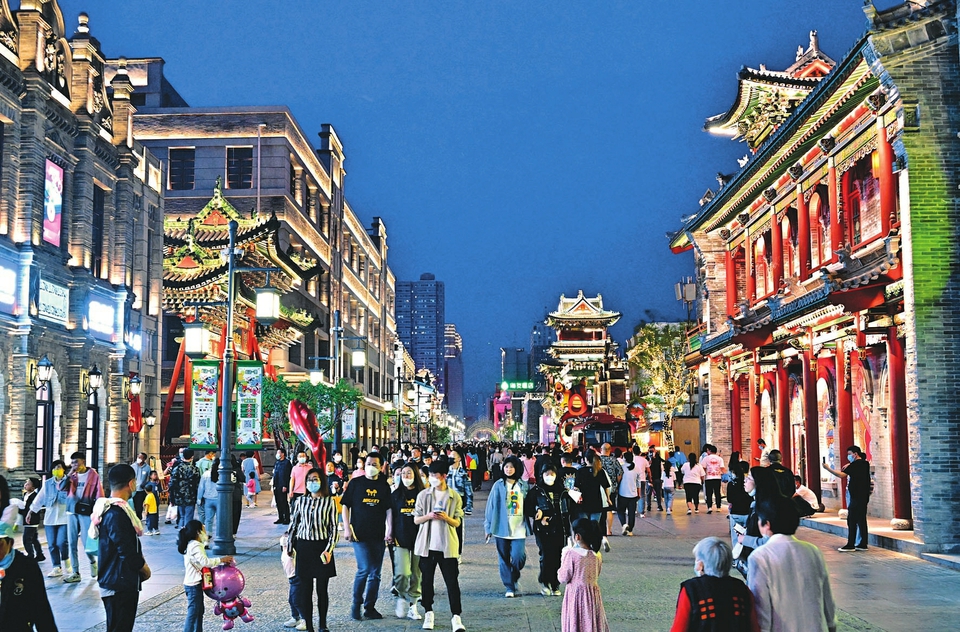 5月15日夜,華燈初上,人們愜意地在太原鐘樓街徜徉。每逢夜幕降臨,鐘樓街上人來人往,青磚綴彩,古風(fēng)悠然,飛檐翹角處霓虹耀閃,古老與時(shí)尚在這里交融,歷史與現(xiàn)代在此地“重逢”,五光十色的鐘樓燈光秀,令人目不暇接、流連忘返。
