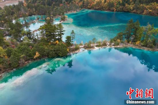 10月23日,深秋時節(jié),四川九寨溝如同油畫一般,漫山遍野的紅葉絢麗多彩,與清澈見底的湖水交相輝映,美輪美奐,“秋日童話”正上演。 張浪 攝