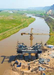 黃河萬榮段汾河治理保護工程防汛搶險聯(lián)通橋工程正在加緊施工。